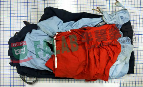 (4)部分烧毁的衣服一套